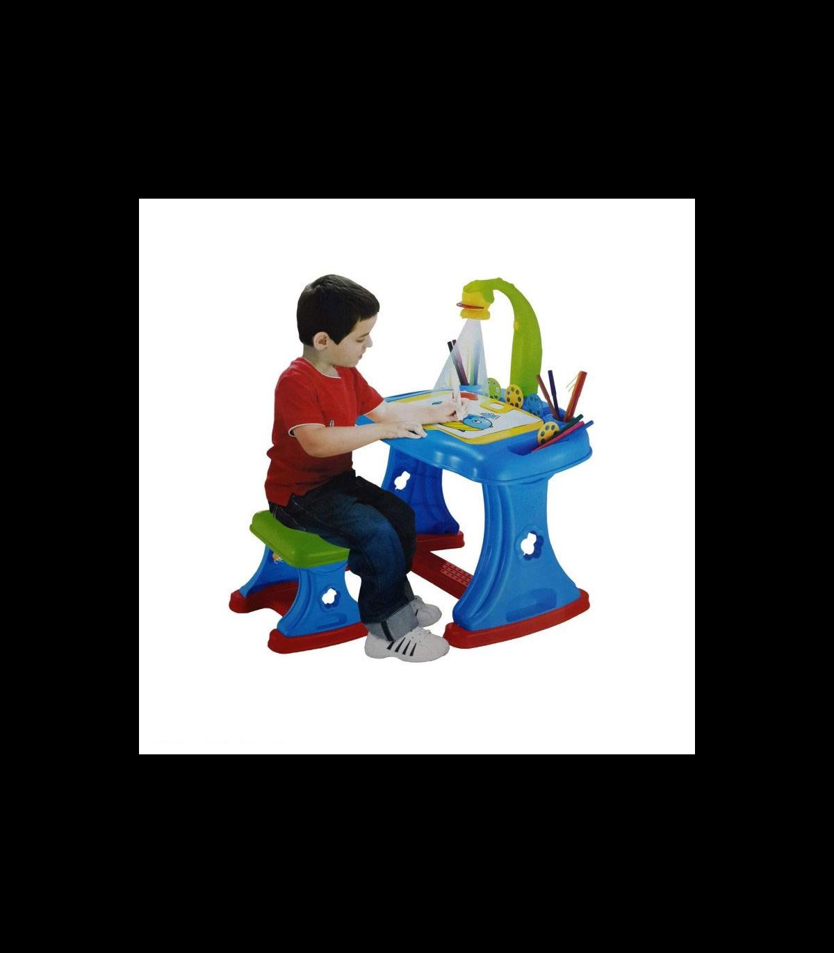 استفاده از این میز نقاشی بسیار ساده است. کافی است باتریها را درون پروژکتور قرار داده و آن را روشن کنید. سپس یکی از اسلایدها را درون شیار پروژکتور قرار داده و تصویر الگوی مورد نظر را بر روی سطح میز یا دفتر نقاشی مشاهده کنید. کودک میتواند با استفاده از ماژیکهای رنگی، تصویر را رنگآمیزی کرده و مهارتهای هنری خود را تقویت کند.