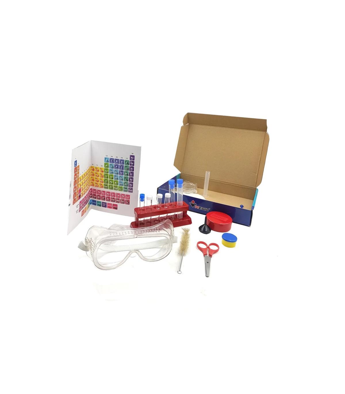 عینک ایمنی، ۲ عدد لوله آزمایش شیشه ای، ۴ عدد لوله آزمایش پلاستیکی، قفسه نگهدارنده لوله آزمایش، لوله استوانه مدرج، لیوان مندرج، ذره بین، قیچی، پنس، قطره چکان، پیمانه اندازه گیری، ظرف کشت سلول و میکروب، قیف، ۲ عدد کاغذ صافی، برچسب، ظرف نگهداری نمونه، ۲ عدد لام، رس شستشوی لوله و پوستر جدول تناوبی عناصر