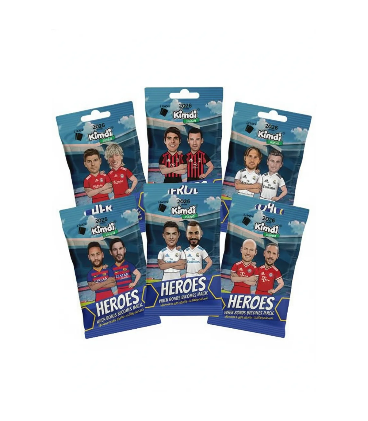 بسته های 6 تایی کیمدی فوتبال 2026 طرح Heroes برای اون هوادار دو آتیشه فوتبال که میخواد کلکسیونر بشه ... شامل ۲ کارت کلکسیونی حداقل یکی از کارتها از نوع Advance، Premium یا Signature دارای ۱ مینیفیگور بازیکن ۲ برچسب کارتی ویژه، ۱ بروشور اختصاصی نسخه HEROES * QR Code پشت کارتها برای تماشای ویدیو بیوگرافی بازیکنان