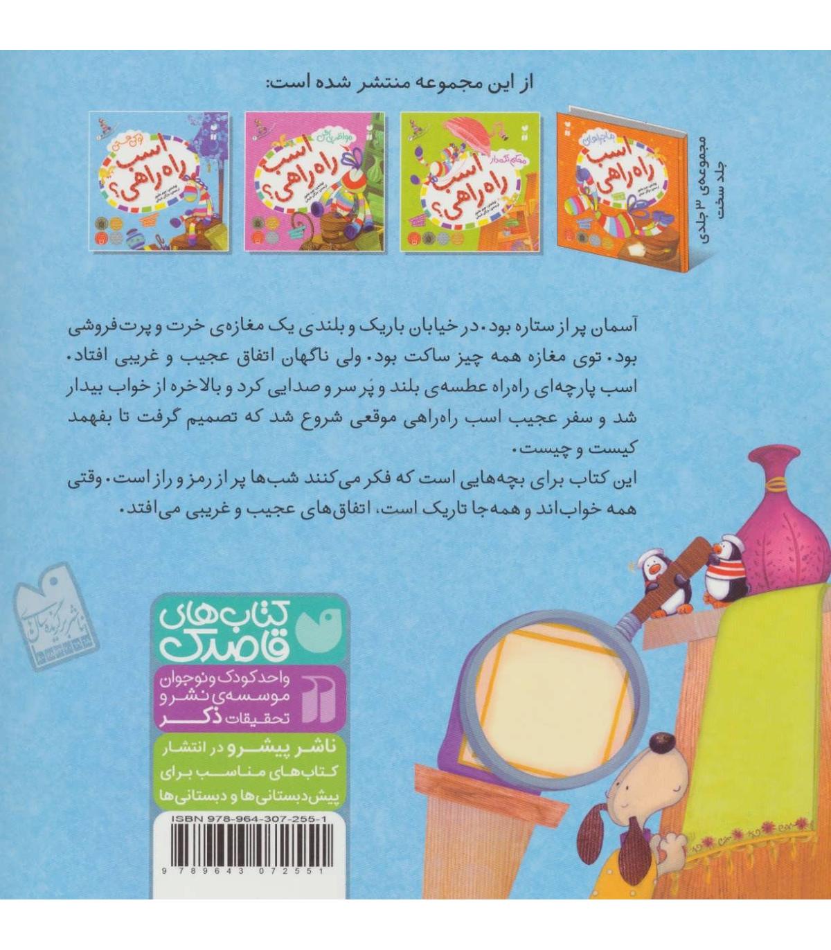 آسمان پر از ستاره بود.در خیابان باریک و بلندی یک مغازه خرت و پرت فروشی بود. توی مغازه همه چیز ساکت بود.ولی ناگهان اتفاق عجیب و غریبی افتاد.پارچه ای راه راه عطسه بلند و پر سر و صدایی کرد و بالاخره از خواب بیدار شد و سفر عجیب اسب راه راهی موقعی شروع شد که تصمیم گرفت تا بفهمد کیست و چیست. این کتاب برای بچه هایی است که فکر می کنند شب ها پر از رمز و راز است. وقتی همه خواب اند و همه جا تاریک است اتفاق های عجیب و غریبی می افتد.