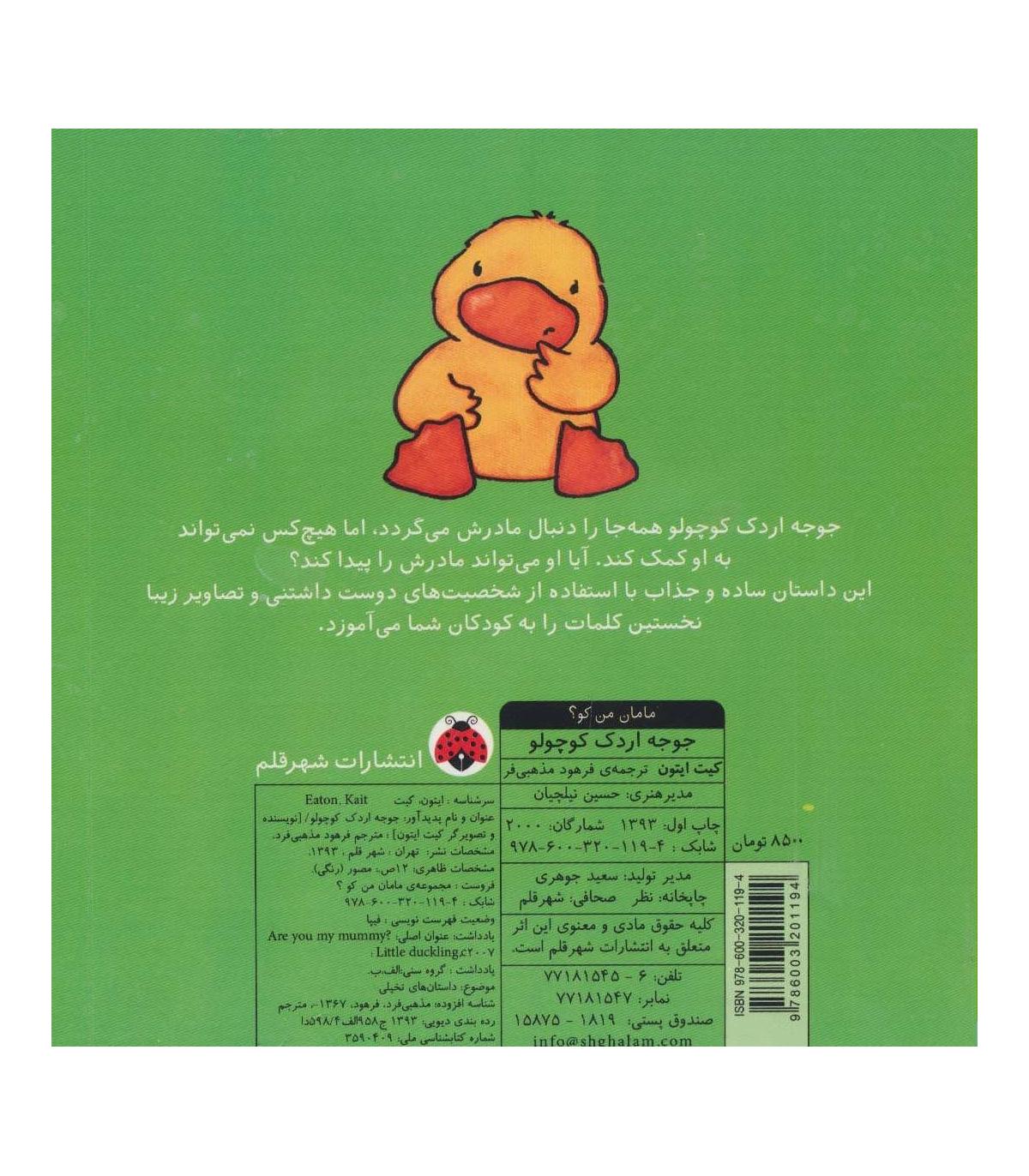 جوجه اردک کوچولو همهجا را دنبال مادرش میگردد. اما هیچکس نمیتواند به او کمک کند. آیا او میتواند مادرش را پیدا کند؟ این داستان ساده و جذاب با استفاده از شخصیتهای دوست داشتنی و تصاویر زیبا نخستین کلمات را به کودکان شما میآموزد.