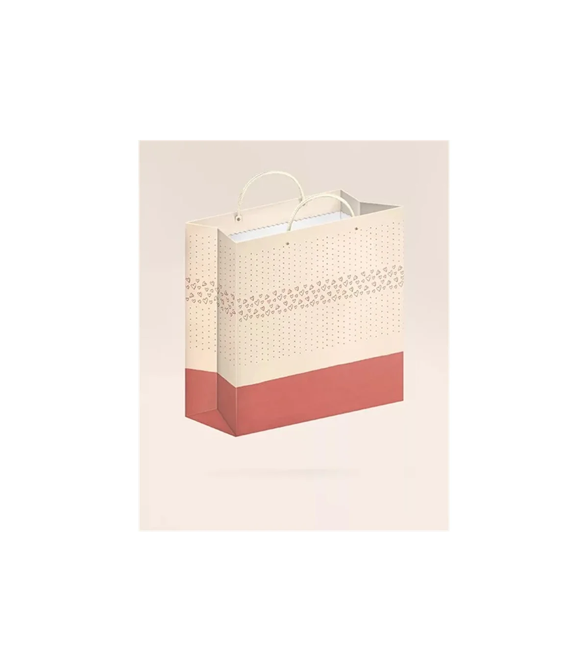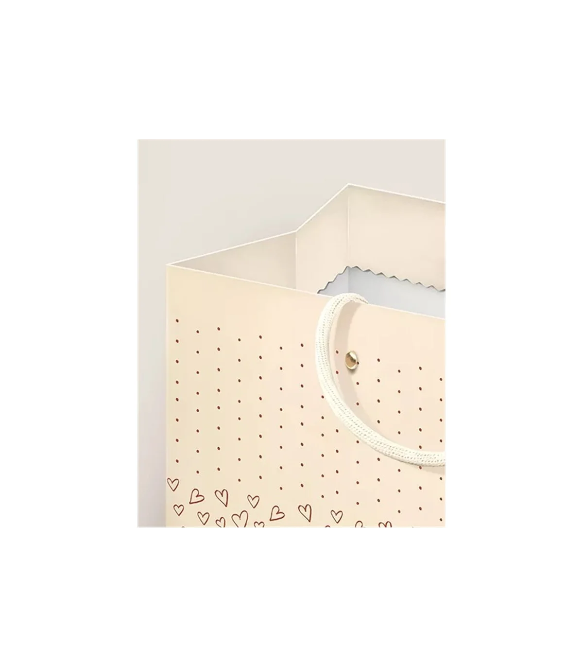 جنس این گیفت بگ از کاغذ با کیفیت بالا است که علاوه بر استحکام، حس لطافت و نرمی را نیز منتقل می‌کند. این ویژگی باعث می‌شود تا گیفت بگ در برابر پارگی و آسیب‌های احتمالی مقاوم باشد و بتواند به‌خوبی از محتوای درون خود محافظت کند.